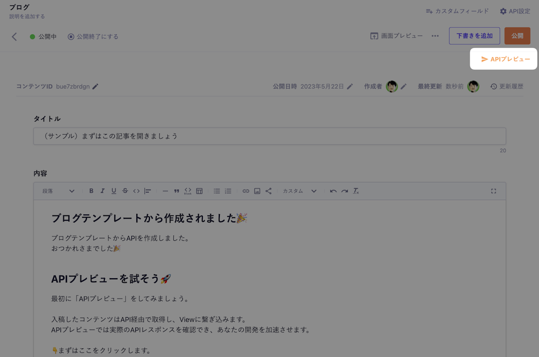 APIプレビューでは実際のAPIレスポンスを確認でき、あなたの開発を加速させます。